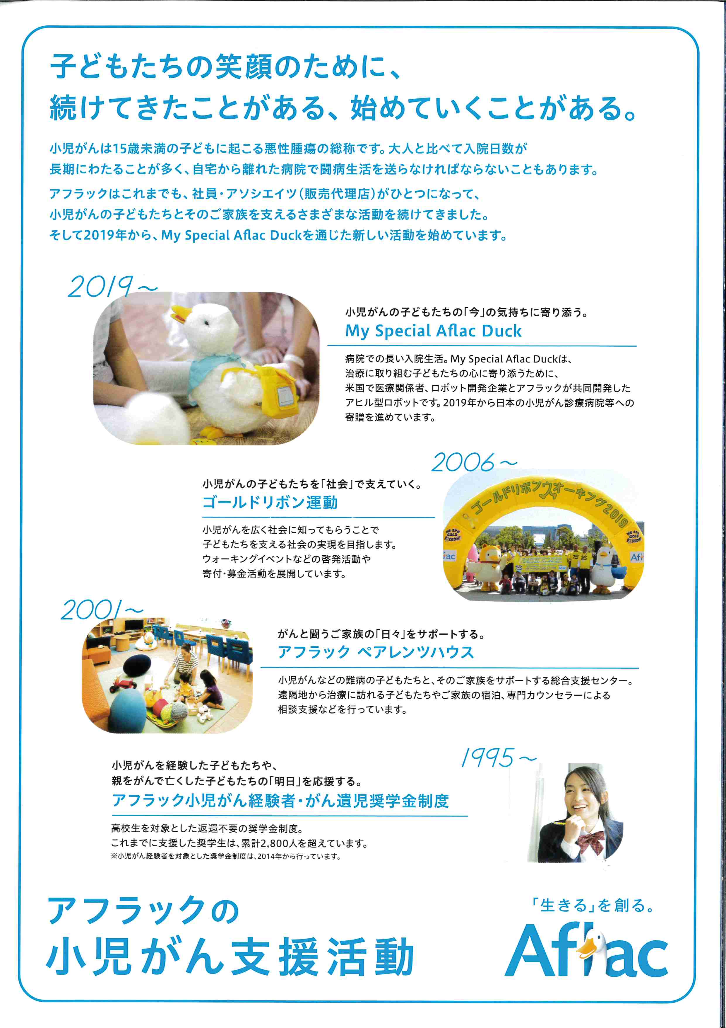 最後になりますが、小児がんの子どもたちは、治療中はもとより、治療後もさまざまな困難が待ち受けています。そのことを一人でも多くの方に知っていただき、支援の輪が広がることを祈念いたします。